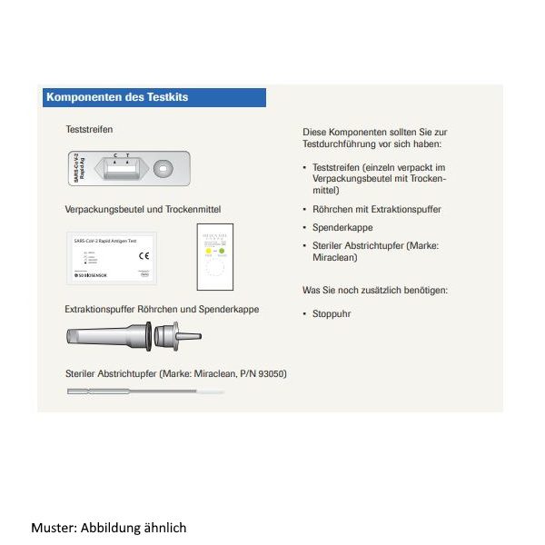 – Zugelassen für die eigene Probenentnahme unter Aufsicht aus dem vorderen Nasenbereich