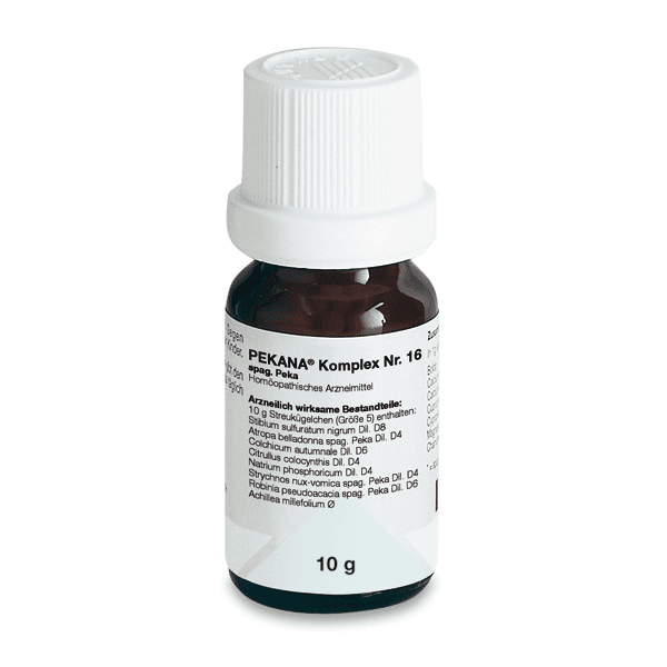 Pekana Complex No.16 Globuli: Registered homeopathic medicine, therefore without indication of a therapeutic indication. Medical advice should be obtained if symptoms of the disease persist during use.